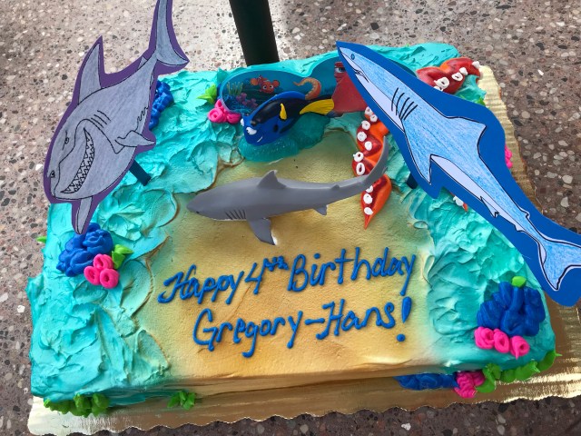 I wish I could take credit for it but our local grocery did the cake. We just added the sharks. 🙂